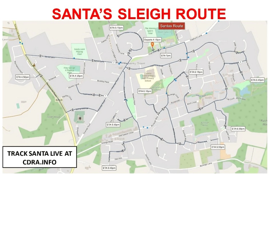 A live Santa Tracker will be available from 4pm. Link will appear at www.cdra.info at 4pm.